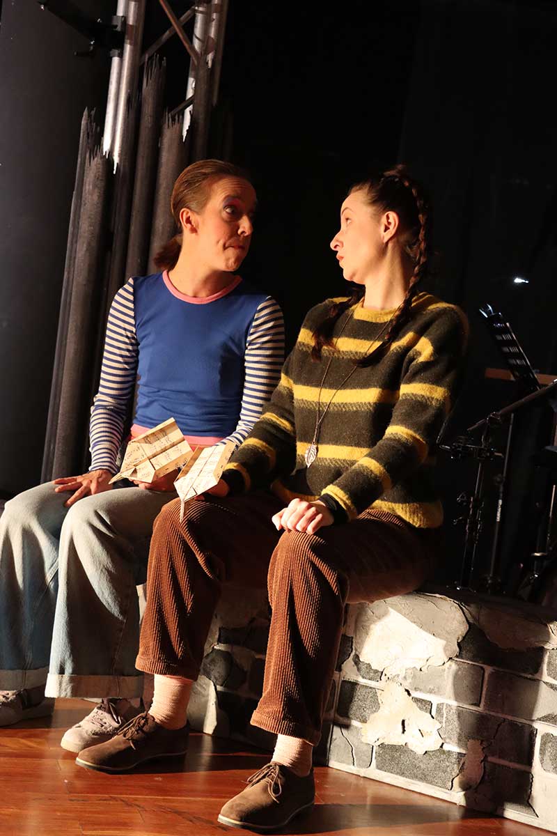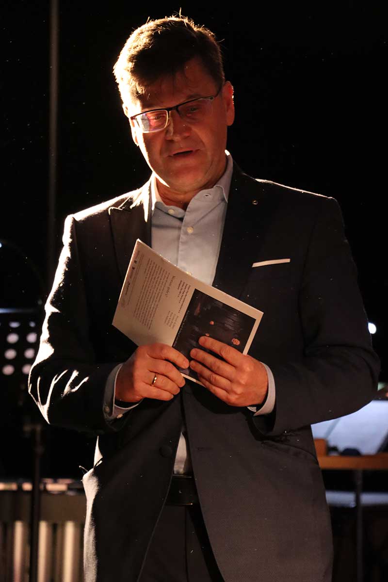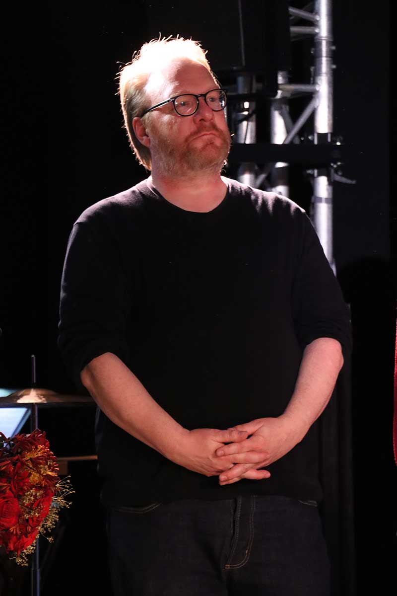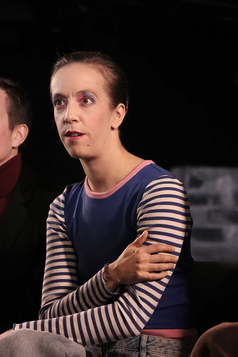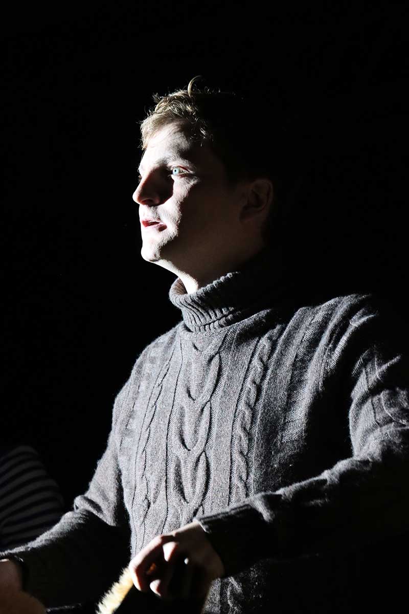Komponist Edzard Locher hat das vielfach ausgezeichnete Theaterstück für Stimme und Perkussion vertont. Seine Musik ist reduziert, präzise und von großer innerer Spannung. Sie verzichtet bewusst auf Sentimentalität und lässt Raum für das Gesagte – und das Verschweigen. Getragen wird sie von dem eindrucksvollen Spiel des Perkussionisten Sven Pollkötter. Die musikalische Leitung lag bei Olivia Lee-Gundermann und Koji Ishizaka.