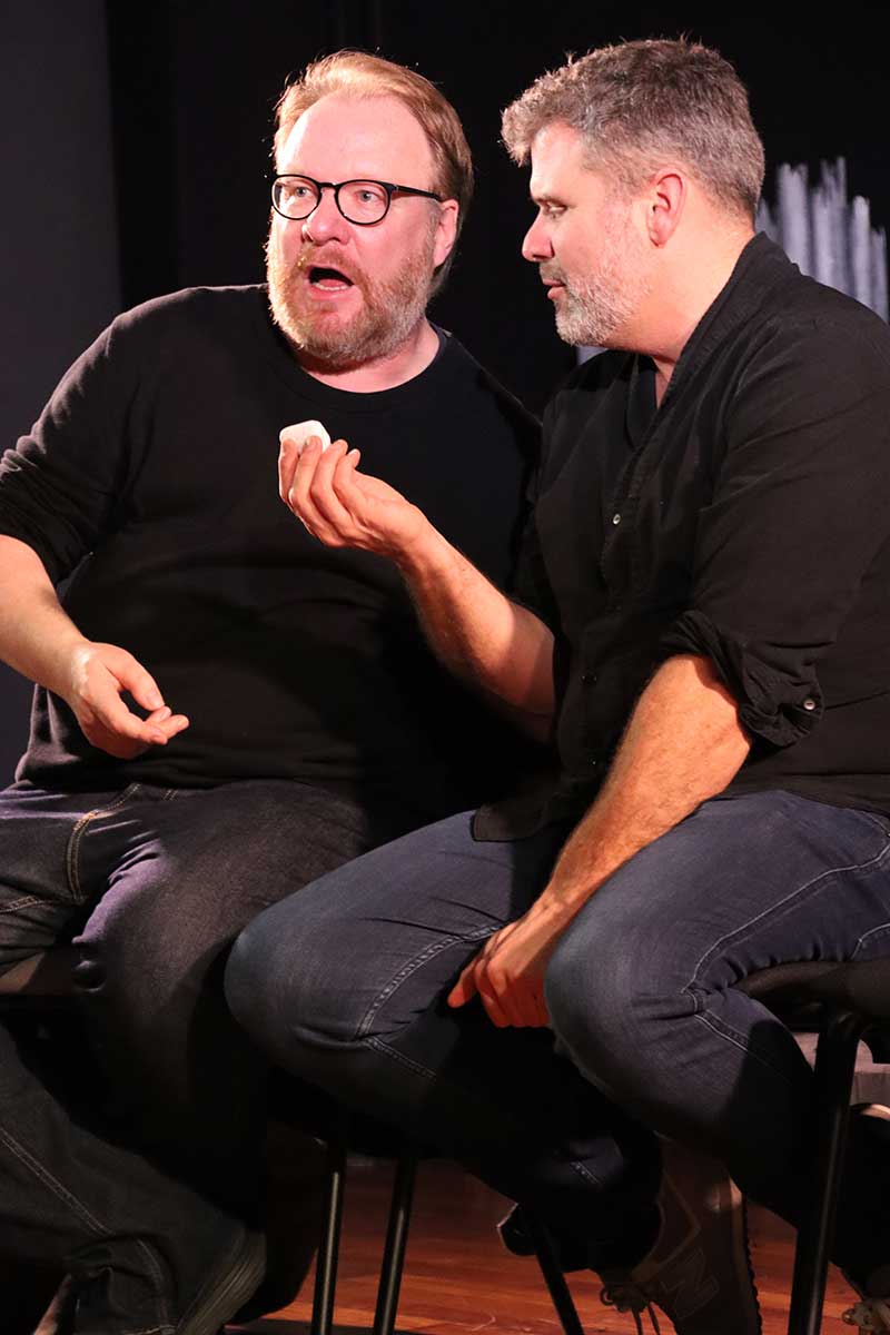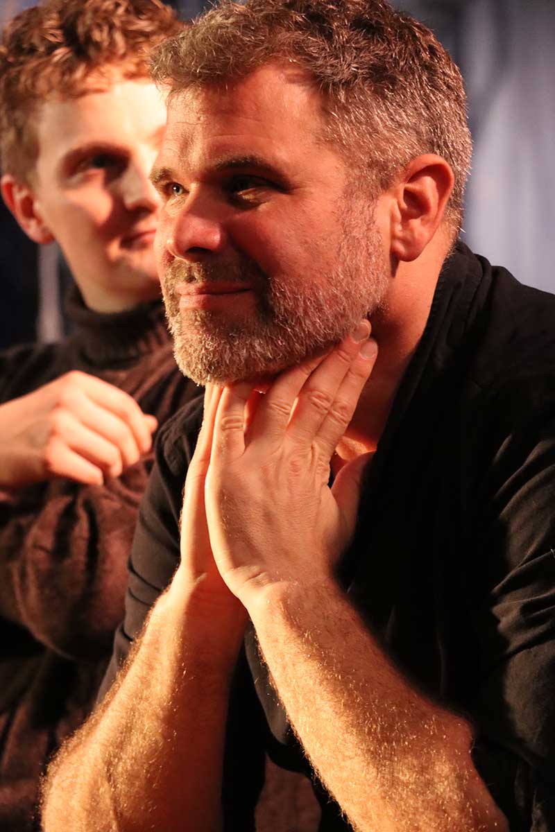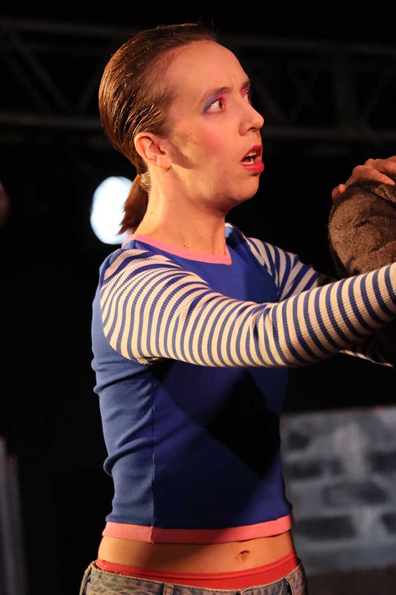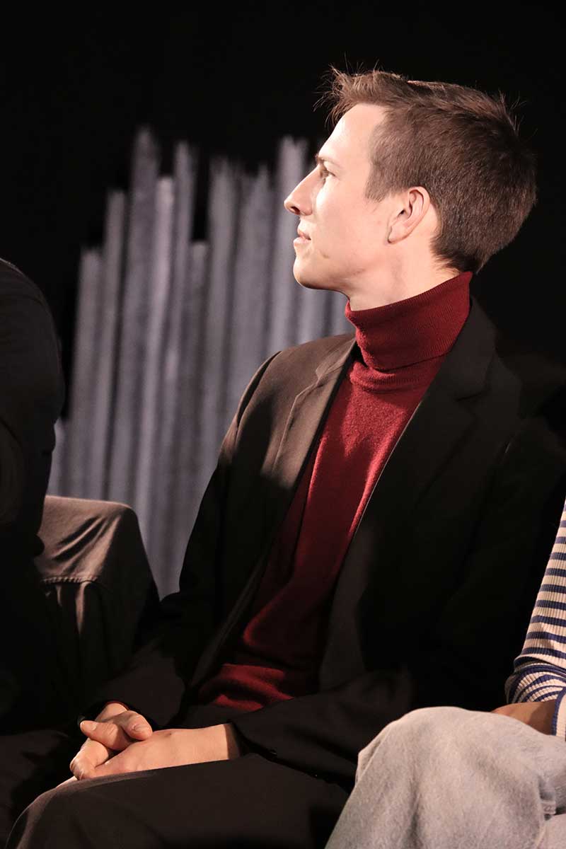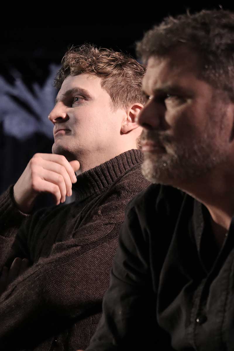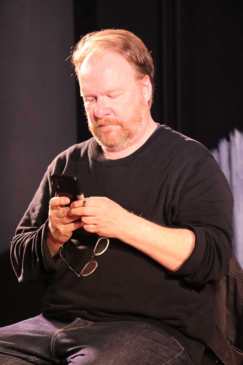 Komponist Edzard Locher hat das vielfach ausgezeichnete Theaterstück für Stimme und Perkussion vertont. Seine Musik ist reduziert, präzise und von großer innerer Spannung. Sie verzichtet bewusst auf Sentimentalität und lässt Raum für das Gesagte – und das Verschweigen. Getragen wird sie von dem eindrucksvollen Spiel des Perkussionisten Sven Pollkötter. Die musikalische Leitung lag bei Olivia Lee-Gundermann und Koji Ishizaka.