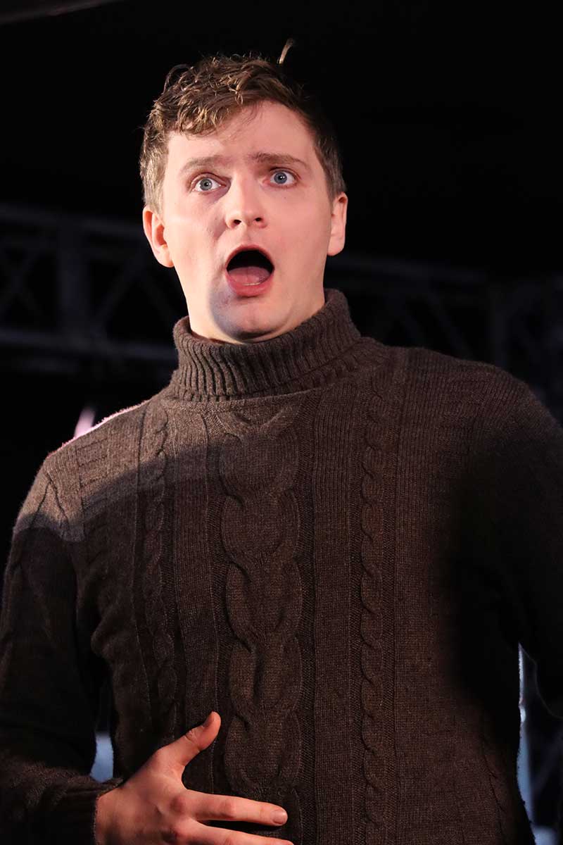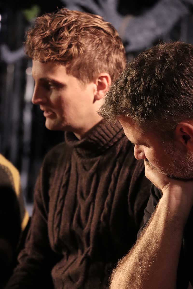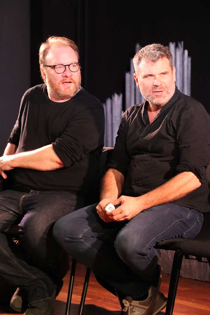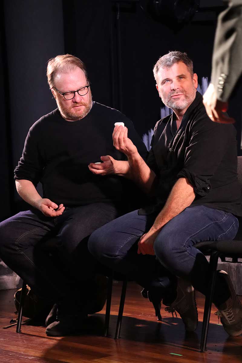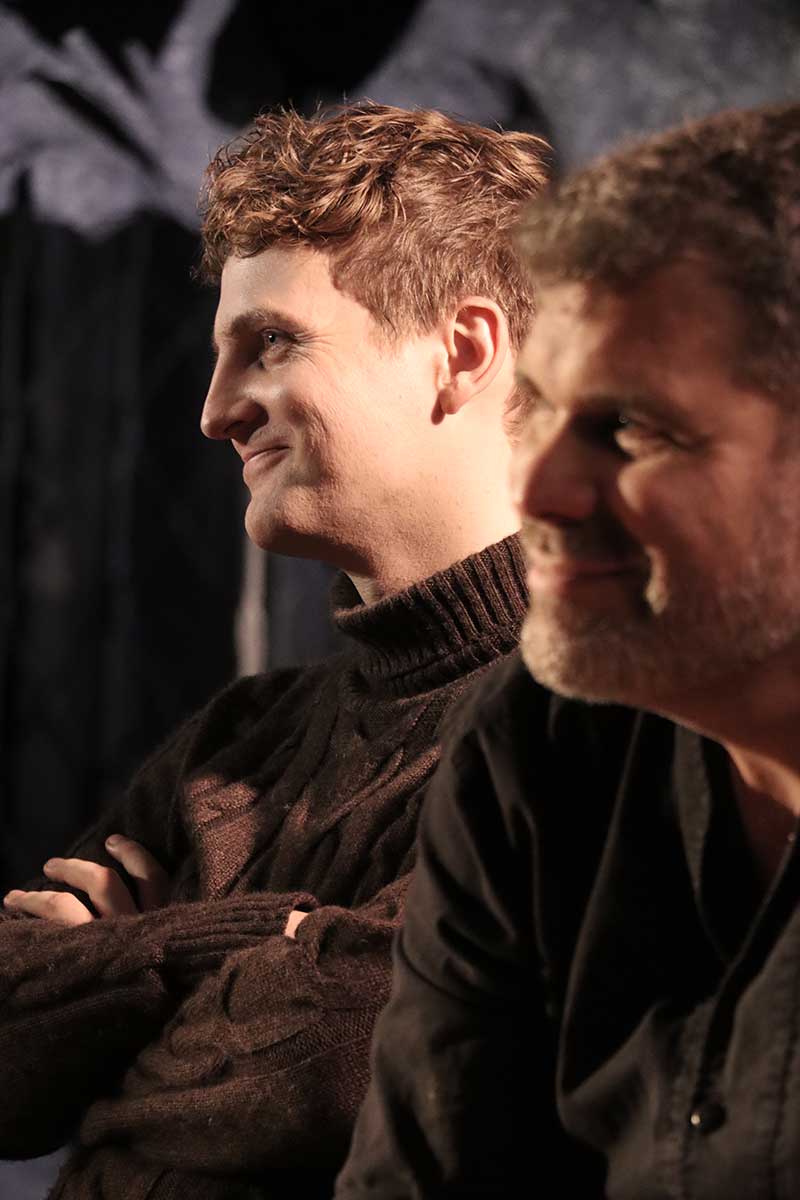 Komponist Edzard Locher hat das vielfach ausgezeichnete Theaterstück für Stimme und Perkussion vertont. Seine Musik ist reduziert, präzise und von großer innerer Spannung. Sie verzichtet bewusst auf Sentimentalität und lässt Raum für das Gesagte – und das Verschweigen. Getragen wird sie von dem eindrucksvollen Spiel des Perkussionisten Sven Pollkötter. Die musikalische Leitung lag bei Olivia Lee-Gundermann und Koji Ishizaka.
