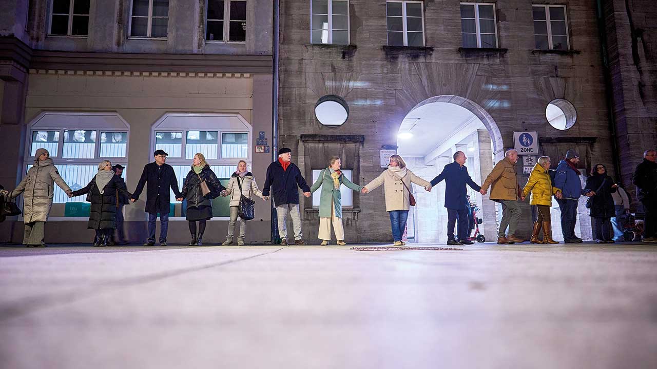 In diesem Jahr erhielt die Feier eine zusätzliche, starke Dimension: Das Bündnis gegen Antisemitismus Bochum organisierte eine Menschenkette rund um die Chanukkafeier, um ein sichtbares Zeichen der Solidarität mit der Jüdischen Gemeinde Bochum – Herne – Hattingen sowie mit Jüdinnen und Juden weltweit zu setzen. Fast dreihundert Menschen folgten dem Aufruf und machten den Abend zu einem eindrucksvollen Moment der Gemeinschaft und Solidarität.